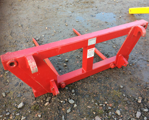 Foster front mounted twin bale spike with euro fittings for front loader, thick walled heavy duty box section construction, 4 conus 2 tapered collars and 4 heavy duty bale tines can be placed so that one bale can be carried centrally or two bales can be carried side by side, two large tines support the bale every time reducing the chance of the bale falling apart.