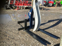 MTL 2.5 tonne pallet fork with log grab for sale, Euro fittings, 1200mm long pallet forks, solid steel back plate with adjustable forks and spring loaded pins to lock into slots on back plate, removable log grab finger operated by a double acting ram supplied with hoses and couplers.