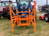 MTL Double hay straw bale vertical stacker for sale for picking up and stacking hay or straw bales, bales can be gripped by their flat ends or on the round, the 12 curved tines grip the bale tightly pulling it into the rear bumper bars for an excellent hold when travelling. Single bales can also be carried. the Stacker features a double acting ram, a support stand for when not in use, 12 curved tines, hoses to connect to the tractor or handler hydraulics as well as a euro fitting connector.