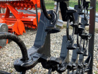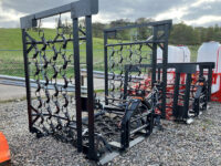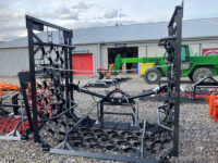 MTL Heavy Duty 6m hydraulic folding grass chain harrow for sale, two front rows of angle steel levelling bars and one rear levelling bar for smoothing out mole hills and divots, toothed mat with cast steel ripping stars to pull out thatch and aerate the pasture, Cat 2 linkage. This machine makes a great job harrowing grass and spreading animal muck over the pasture area, rejuvinating and aerating. The heavy levlling bars knowck down and spread mole hills allowing the grass to come through. The hydraulic folding wings have manual locking for raod transport. The reversible mat can be used for arable cultivations, breaking down clods and levelling.