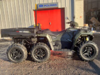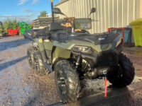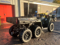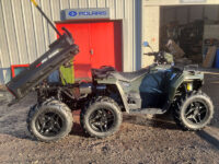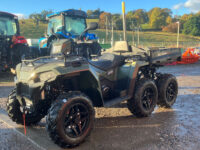 Polaris 2025 model Sportsman 570 Big Boss 6×6 for sale, new uprated heavy duty chassis with double A-arm independent suspension on all 6 wheels, hydraulic disc brakes, Active Descent Control, Engine Braking System, Adjustable Electronic Power Steering, road lighting, pod mounted LED headlights, front under-rack storage and battery compartment, front rack extender, 360kg rear tipping loadbed with pick up style back door, tow bar, ball and 7 pin trailer electrics, seating for two people with passenger foot steps, alloy wheels & ATV tracker.