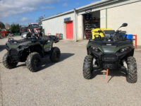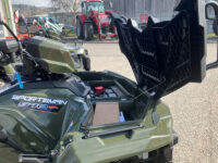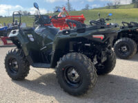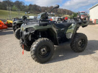 Polaris Sportsman 570EPS 2025 model 44hp 4×4 ATV for sale, 570cc petrol engine with electronic fuel injection, new 2025 model with electronic power steering, opening front rack, front rack extender, rear rack with passenger grab handles, full EU road traffic LED lighting, handlebar mounted rear view mirrors, premium quality LED headlamp pod & front lights with dip, main beam & running lights, full on demand shift on the fly 4wd engagement, High and Low range automatic transmission with Neutral, Reverse & Park, lever operated hydraulic disc brakes all round & fully independent suspension on every wheel for that safer & comfier ride, 12 inches of ground clearance and industry leading suspension travel, Sage Green plastics, 1 1/4 inch hitch receiver and 7 pin trailer socket, Polaris Integrated front winch with nylon rope, heated grips and thumb warmer.
