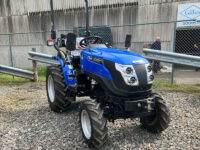 Solis S26+ 26hp compact tractor for sale, new side mounted gearshift design, with selectable 4wd, differential lock, 2 speed 540rpm PTO, oil immersed disc brakes, 6 forward 2 reverse speed mechanical transmission, suspended seat, indicators & lights, Cat 1 rear linkage, 1 d/a spool valve, trailer drawbar, folding ROPS bar, front tow hitch, 540/1000rpm PTO speeds, Mitsubishi diesel engine and power steering.