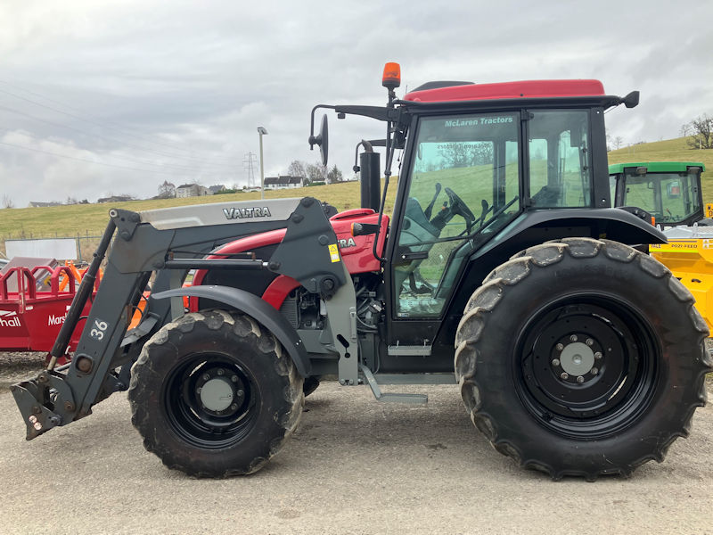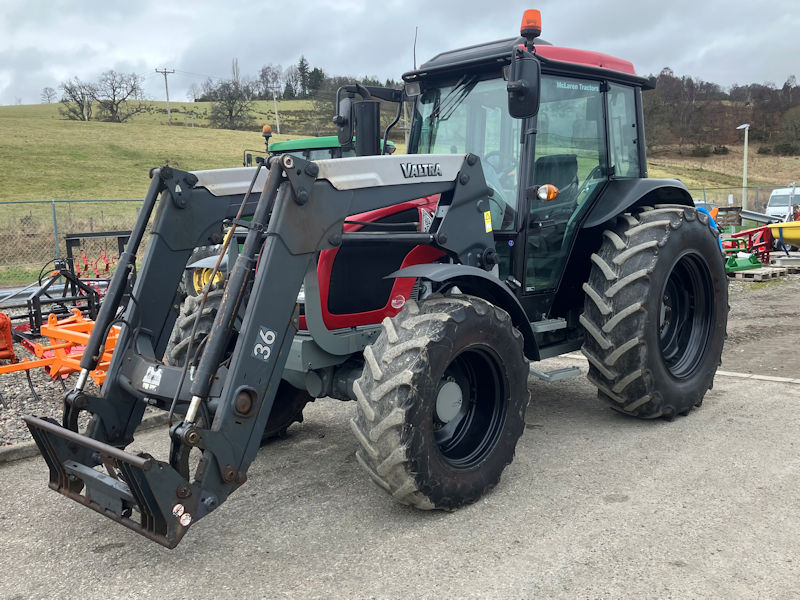 Valtra A93H 101hp 4wd tractor with loader for sale, 2017 model, only 3500hrs from new, one owner, 3.3 litre SISU engine with NO Ad-Blue, 40km/h 12×12 Hi-tech transmission with LH electric power shuttle, oil immersed wet brakes, pick up hitch with drawbar, 2 d/a spool valves, 16.9R34 & 13.6R24 tyres, steering front wings, hydraulic trailer brakes, free flow return, 3.6 tonne rear lift with telescopic lift arms, 55lp hydraulic flow, 180 bar maximum pressure, Bosch electronic linkage control with external wing buttons, front & rear work lamps, fitted with Quicke/Valtra Q36 parallel loader with euro hitch front carrier, electric 3rd service, soft-ride & cable joystick control.