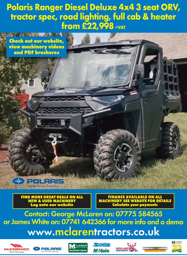 Polaris Ranger Diesel 4×4 3 seat ORV, full cab, heater, light bar £22,998.00